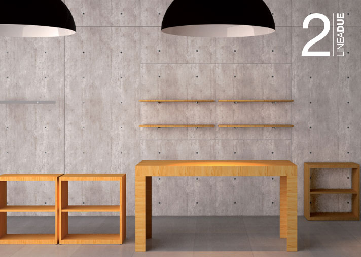 Įvairių dydžių grubaus oksiduoto betono imitacijos plokštės gali būti naudojamas sienų interjere. Tai ne tik su minimali, bet taip pat universali bei multi-funkcionali linija tinkama įvairiose interjero salonuose, parduotuvėse.